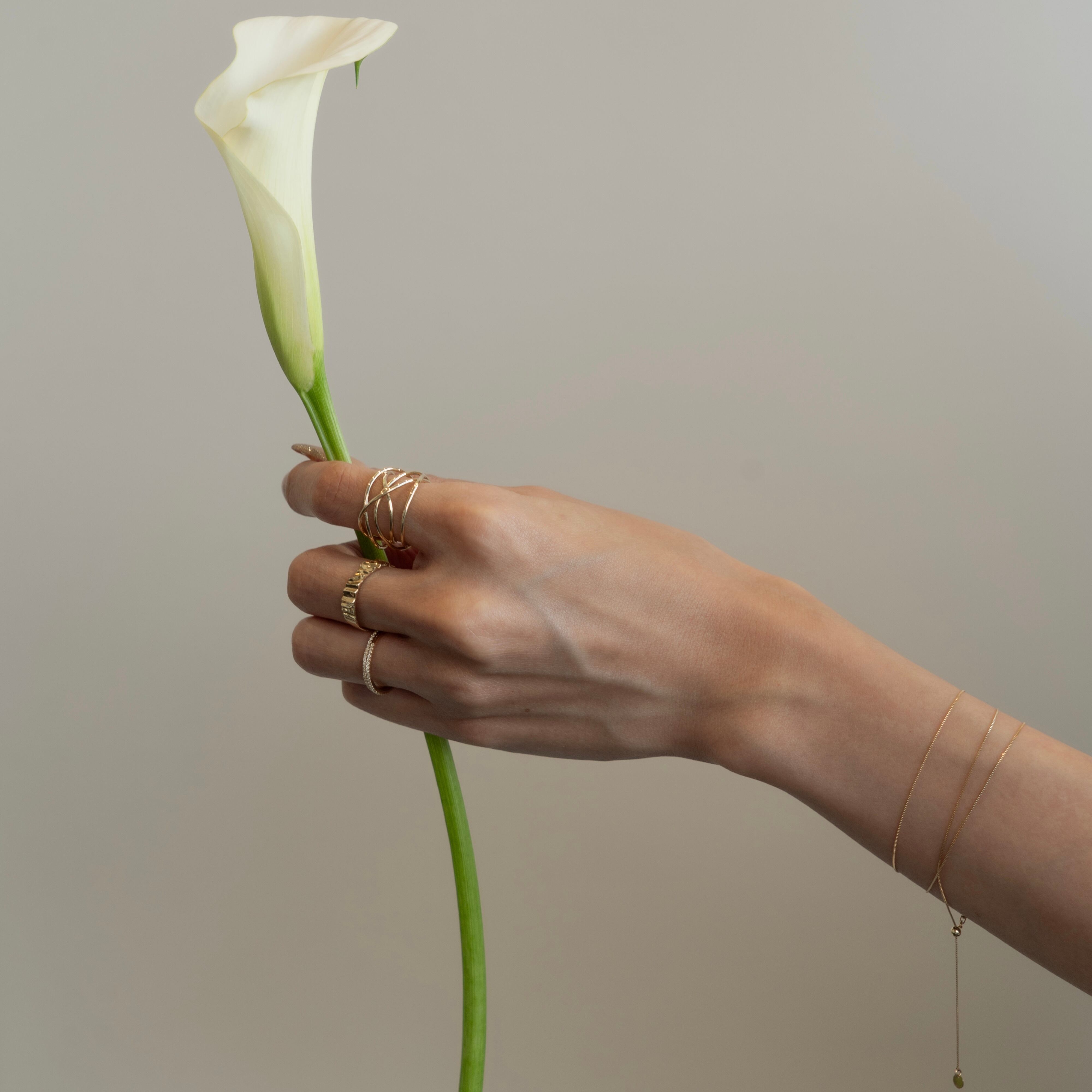 軽やかでしなやかな質感は単品でも重ねづけでも。